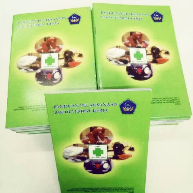 Buku panduan p3k di tempat kerja.